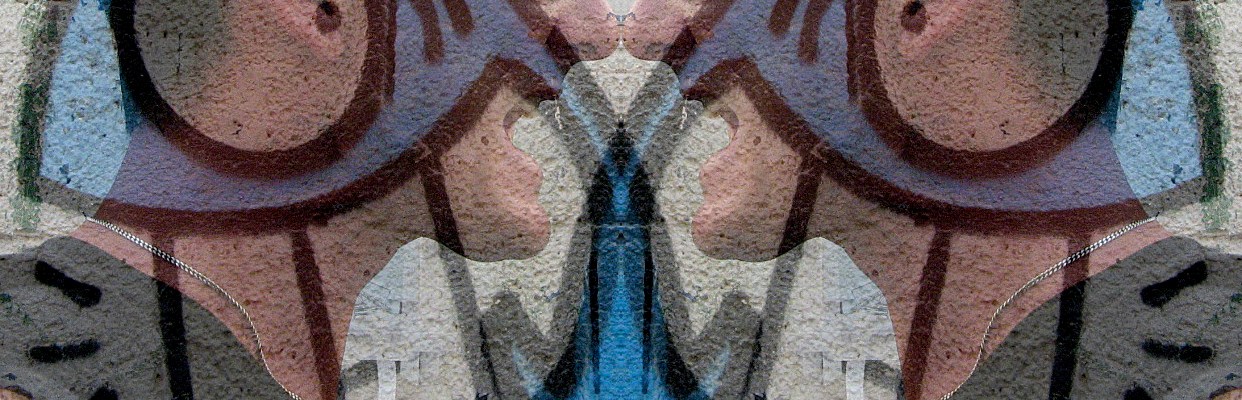 Voilà un selfie pyranhamique où je ne suis absolument pas en colère. J’imite simplement le poisson graffité sur le mur derrière moi. Après, j’ai réfléchi l’image en transparence, pour me faire face-à-face, aimablement.